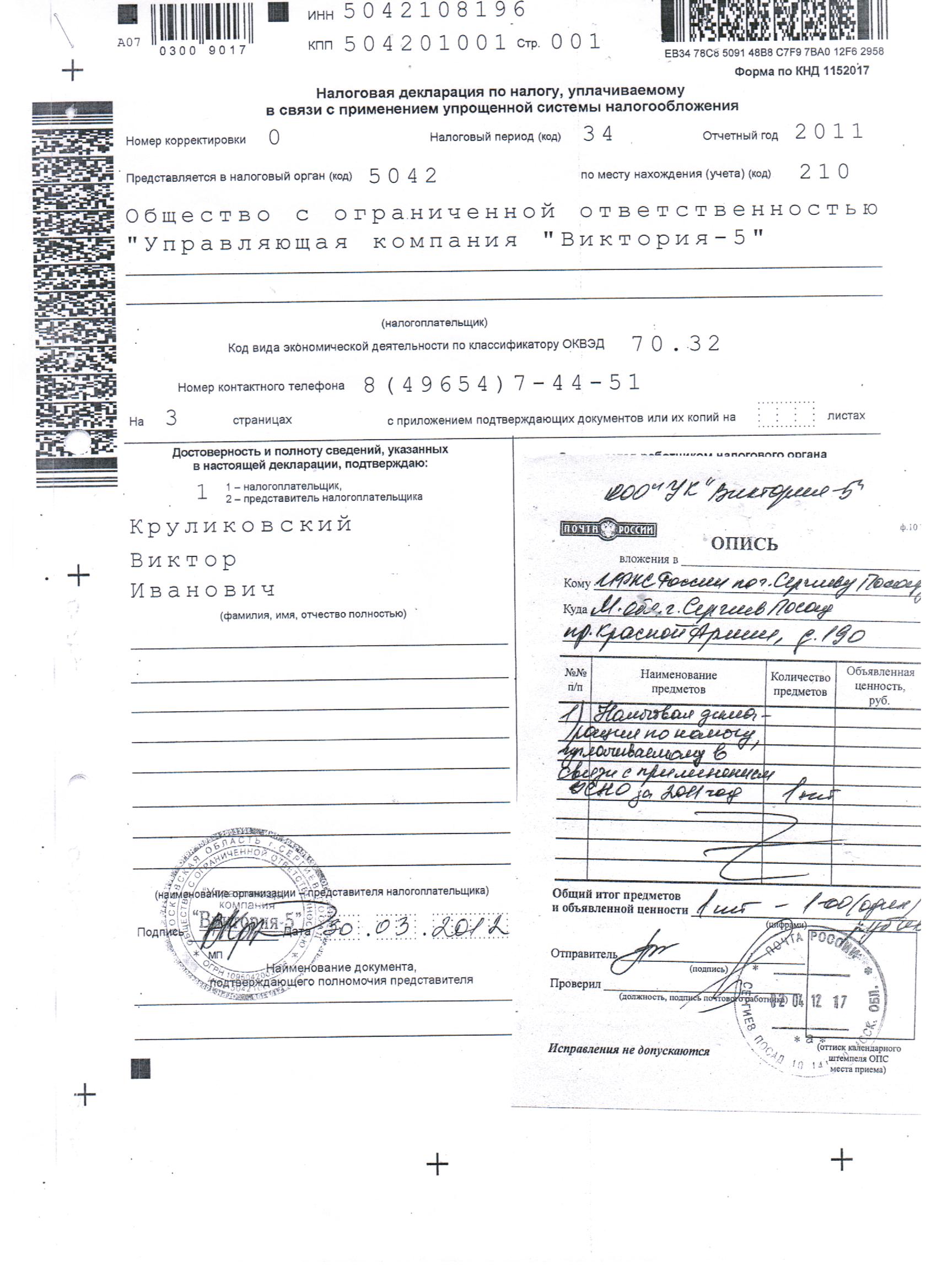 Налоговая декларация по налогу за 2011г.